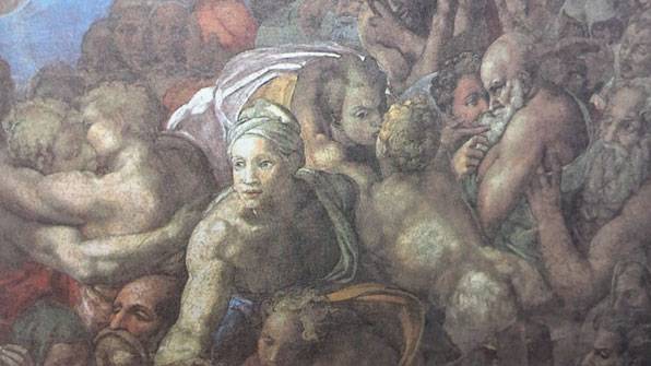 가까이에서 찍은 사진을 보니 지금껏 제대로 주목하지 않았던 이미지들이 눈에 들어옵니다. 예수 그리스도와 사도들을 중심으로 주변을 에워싼 인물들은 가톨릭교회의 수호성인들입니다. 그런데 실오라기 하나 없는 알몸에다 버젓이 가슴을 드러냈는가 하면, 키스를 하는 모습까지 적나라하게 묘사돼 있습니다. 제 아무리 독실한 신앙인이라도 이 정도 수위라면 고개를 갸우뚱 할 수밖에 없습니다. 미켈란젤로가 당대 최고의 예술가였다지만 성직자들이 가만히 있었을 리가 없었겠죠. 그래도 그림을 주문한 교황이 살아 있는 동안은 아무 일도 없었답니다. 하지만, 교황이 선종하자 공개적인 비난을 자제하던 성직자들이 대놓고 공격을 퍼붓기 시작했습니다. 심지어 미켈란젤로를 ‘외설의 발명자’라고 부르기도 했다는군요. <최후의 심판>은 졸지에 ‘춘화’(야한 그림)로 낙인 찍혔습니다. 급기야 가톨릭 종교회의는 수호성인의 벗은 몸에 옷을 입히기로 하고, ‘다니엘 레 다 볼테라’라는 이름도 생소한 화가에게 작품을 수정하는 임무를 맡깁니다. 결국 후대의 누구도 미켈란젤로가 처음에 그린 <최후의 심판> 원본은 영영 볼 수 없게 됐습니다. 그렇다면 미켈란젤로는 당시 왜 그런 묘사를 했던 걸까요? 당시 성직자들의 비난대로 이 작품은 정녕 교회의 신성함과 경건함을 해친 걸까요? 현대를 사는 우리는 이 작품을 어떻게 받아들여야 할까요? 위대한 예술가의 위대한 작품은 470여 년이란 긴 시간이 흐른 뒤에도 끊임없이 이런 질문을 던지고 있습니다.