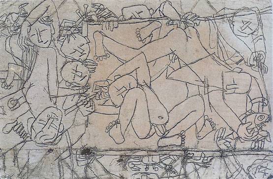 지독한 가난 때문에 평생 캔버스 그림을 단 한 점도 남기지 않았던 비운의 거장 이중섭. 그럼에도 그림에 대한 열정은 그 어떤 화가에도 비할 바가 아니었습니다. 대표적으로 담뱃값 속지를 뜯어내 그린 은지화를 꼽을 수 있죠. 동서양을 막론하고 화가 중에서 은지화에 그림을 그린 사람이 있다는 얘기를 혹 들어보셨나요? 없습니다. 은지화 하면 곧 이중섭인 셈입니다. 그런데 바로 이 은지화가 얼토당토않은 춘화 시비에 휘말렸습니다. 6.25 전쟁이 끝난 뒤 1955년 1월 서울 미도파 백화점 4층 미도파화랑에서 화가 이중섭의 첫 개인전이 열렸습니다. 당연히 화가로선 공개적인 전시회 자리에서 작품 세계도 인정받고 그림도 많이 팔리기를 바랐겠죠. 그런데 전시회가 한창이던 어느 날 정부 당국 인사들이 전시장에 들이닥쳐 은지화만 골라서 모두 철거해 가버립니다. 벌거벗은 어린이들을 그렸다는 이유로 말입니다. 위 은지화를 한 번 보시죠. 어디에서 춘화적 요소를 찾을 수 있답니까? 그런데도 당국은 매몰차게 이중섭의 은지화를 몽땅 벽에서 떼어냈습니다. <이중섭 평전>을 쓴 미술평론가 최열은 이 사건을 ‘사건’이라 부를 수도, 새로울 것도 없다 했습니다. 사건을 전후해 이중섭이 쓴 엽서 편지 어디에도 충격을 받았다고 볼 만한 내용이 없었다는 겁니다. 하지만, 그렇다고 해서 첫 전시회에서 당한 어처구니없는 사건을 그저 ‘있을 수 있는 일’로 가볍게 넘겨버리고 말았을까요.