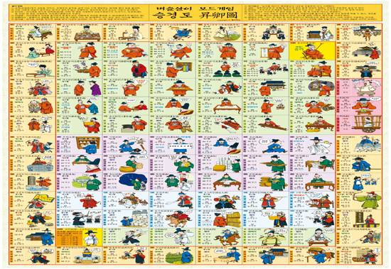 윷놀이는 식상하고, 컴퓨터 게임은 눈치가 보입니다. 심심한 연휴를 즐겁게 보내기 위해 소중이 멋진 게임을 소개합니다. 조선 시대 양반집 아이들이 즐겨 놀았던 조선판 보드 게임 ‘승경도 놀이’입니다. 승경도는 ‘벼슬살이를 하는 도표’라는 뜻을 갖고 있습니다. 종이에 조선 시대의 관직 이름을 적고 ‘윤목’이라 불리는 주사위를 굴려 나온 수에 따라 등급을 올리거나 내리는 놀이죠. 잘못하면 관직을 박탈당하거나 사약을 먹고 죽을 수도 있기 때문에 스릴이 넘칩니다. 조선 초기 관료 하륜(1377~1416)이 양반집 자녀들에게 관직 체계를 가르치고 학구열을 높이기 위해 만들었다고 합니다. 게임 자체도 재미있어 『난중일기』에는 이순신 장군이 군관 송희립·김대복을 불러 승경도 놀이를 했다는 기록도 있습니다.