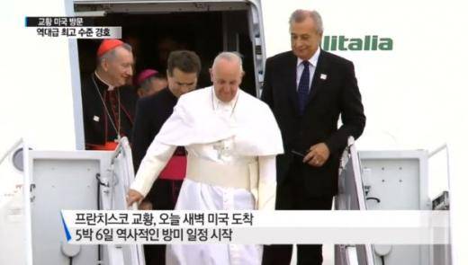 생애 첫 미국 방문일정을 시작한 프란치스코 교황의 수수한 모습이 눈길을 끌고 있다.