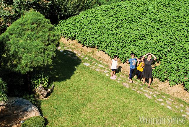 관광객으로 붐비는 충북 단양의 고수동굴 앞을 지나 10분쯤 더 달렸을까. 차 한 대가 겨우 지날 수 있을 법한 좁은 길을 지나자 동화 속에서나 본 듯한 단독주택 한 채가 나타났다. '꽃피는 집'이라 쓰인 팻말에선 집주인이 꽤나 감성적인 사람이라는 것을 느낄 수 있었다. 잡초 하나 없는 초록 잔디밭 위로 반짝이는 돌길을 따라 몇 걸음 들어서자 서글서글한 눈매의 조주희 작가가 맞아주었다.