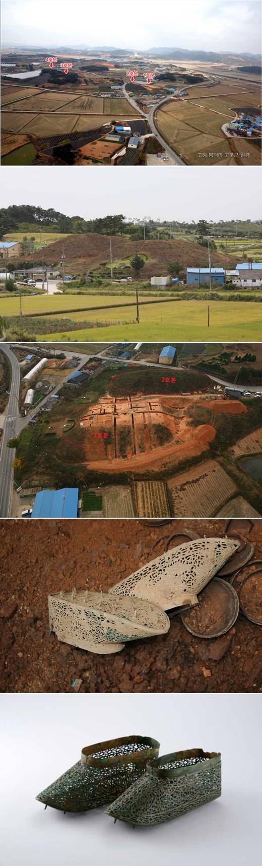 특히, 4호 석실에서는 화려함이 돋보이는 금동 신발과 함께 중국제청자반구호, 소호장식유공광구호 등 다량의 유물이 출토되어 봉덕리 고분군의 축조세력이 당시 고창지역의 최상위 계층임을 알 수 있게 해준다.