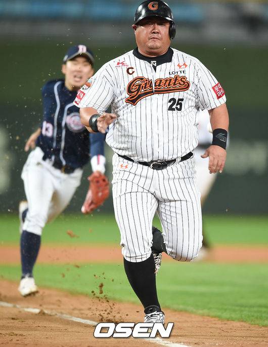 [OSEN=부산,박준형 기자] 24일 오후 부산 사직구장서 열린 '2015 타이어뱅크 KBO리그' 롯데 자이언츠와 두산 베어스의 더블헤더 2경기, 4회말 1사 만루 롯데 문규현의 내야안타때 3루 주자 최준석이 홈쇄도해 세이프되고 있다.