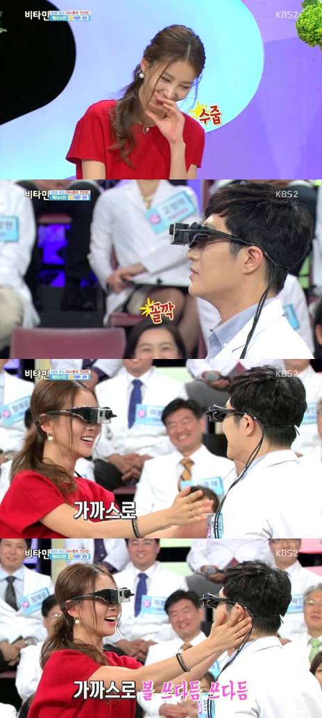 1일 방송된 KBS '비타민'에서는 100인의 의사가 등장해 '위험한 질병'을 주제로 이야기를 나눴다. 이날 출연한 김정민은 거꾸로 안경을 쓰고 공을 주고 받는 게임에서 훈남 의사와 대결을 펼쳤다.