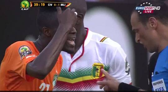 모두가 문제 없는 플레이라 생각하고 넘어갈 찰나, 모로코 출신 엘 아라흐 주심은 간접 프리킥을 선언했다. 주장 야야 투레를 비롯해 코트디부아르 선수들은 이해할 수 없다며 주심에게 달려들었다.