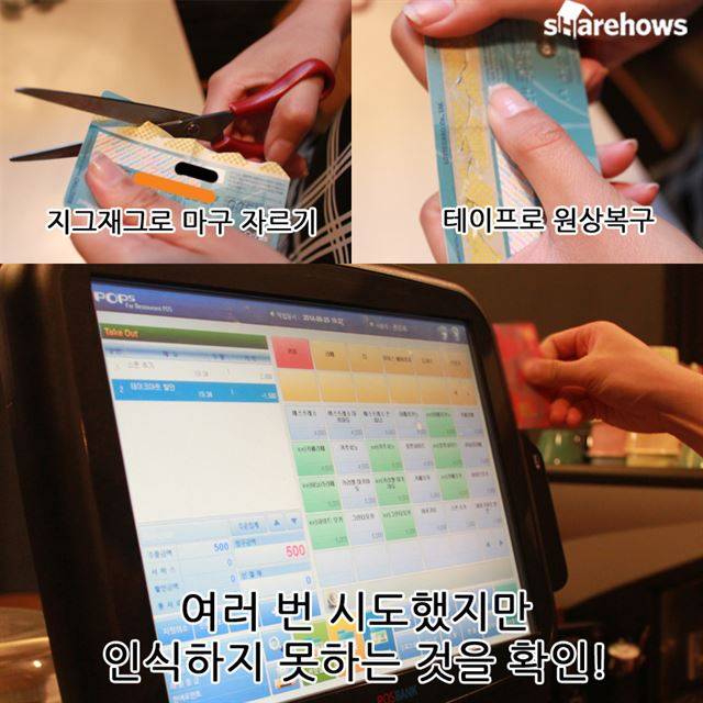 2. 마그네틱 부분을 지그재그로 잘라 최대한 손상시킨다.이 역시 마그네틱에 남아있는 정보의 배열을 깨고 최대한 손상시키기 위해서 하는 일인데요. 잘게 자를 수록 더욱 효과가 좋습니다.