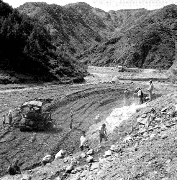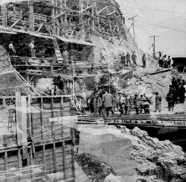 | 1955년 괴산수력발전소 건설현장. 행정자치부 국가기록원 제공 |