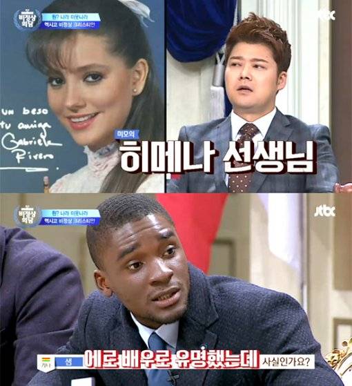 방송에 출연한 샘 오취리는 “히메나 선생님이 에로 배우로 유명했다던데 사실이냐?”라고 물었고, 유세윤은 “몰랐냐?”며 “굉장히 유명한 소문이다”라고 말했다.