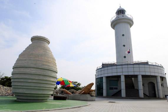 동백 터널을 나오자 비로소 등대 앞 중앙광장이다. 섬의 정상은 등대와 중앙광장, 숙소동으로 구성된다. 중앙광장에는 커다란 옹기 조형물이 다시 한 번 옹도의 의미를 전달한다. 그 옆으로 고래 조형물이 있다. 그러고 보니 멀리서 본 옹도는 고래를 닮았다. 실제로 일대 어민들은 고래섬이라고 부른다. 등대에 전시관도 있다. 옹도 모형 등이 있어 발길이 닿지 않는 섬의 면면까지 살펴볼 수 있다.