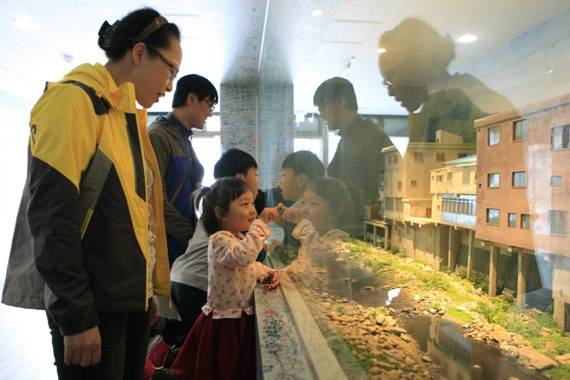 리플릿 한 장 들고 이웃한 호남슈퍼로, 봉화식당으로, 한양다방으로 미로처럼 열리고 닫히는 전시 공간을 탐험한다. 남쪽 신설교에서는 하천 위에 다리를 세운 탄광촌 까치발 건물이 또렷하다. 한때 철암의 인구는 4만 5000명에 이르렀고, 까치발 건물 맞은편 산등성에도 집이 가득했다.