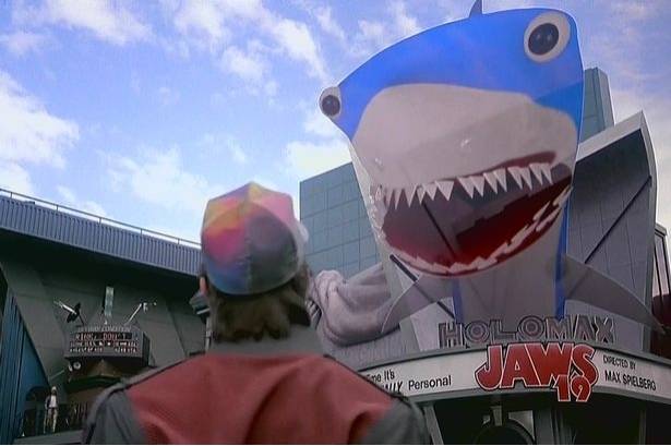 ▶3D영화=미래로 간 마티는 영화 ‘죠스19편’을 홍보하는 3D 영상을 보고 깜짝 놀란다. 상어가 입을 떡 벌리고 있는 바로 그 3D 영화는 이미 우리가 영화를 보며 즐기고 있는 기술이다.