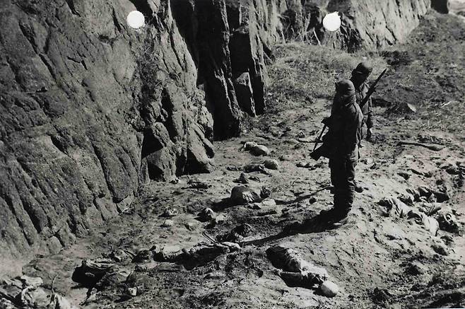 여기서 일단 눈에 띄는 점은 사망한 지 4~5개월 되었다는 미 조사관의 법의학적 소견이었다. 1951년 3월 발견했으니까 4~5개월 전이면 1950년 10~11월이 된다. 그렇다면 논리적으로 이 사진은 1950년 9월 28일 국군 수복 후 학살사건의 희생자들을 촬영한 것으로 봐야 한다.