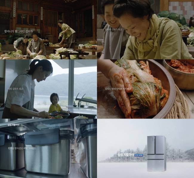 삼성전자 관계자는 3일 “모녀 3대를 통해 온 가족이 먹을 김치를 책임지는 주부들의 김장 모습을 재현하고 가족 간의 사랑도 담아내고자 했다”며 “삼성 지펠아삭 김치냉장고의 메탈그라운드로 딸과 엄마의 합작품인 김치를 맛있게 보관할 수 있을 것”이라고 말했다.