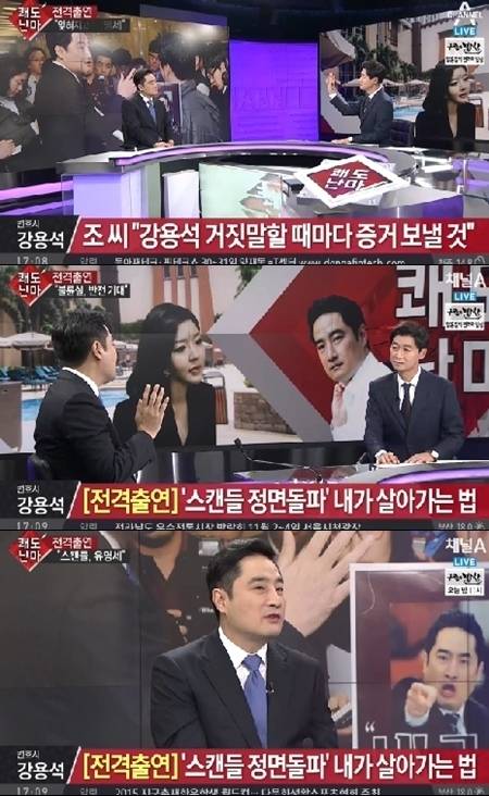 지난 3일 방송된 TV조선 '뉴스를 쏘다'에는 강용석이 출연해 김미나와의 불륜 스캔들과 관련해 "사실이 아니다"고 재차 강조했다.