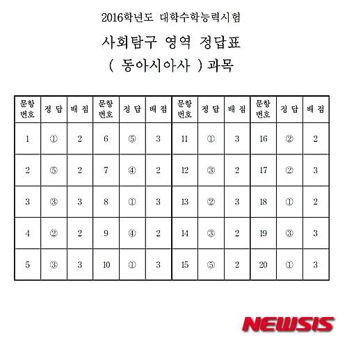 【서울=뉴시스】임종명 기자 = 2016학년도 대학수학능력시험 사회탐구영역 동아시아사 답안. (답안 = 한국교육과정평가원 제공) 2015.11.12.
