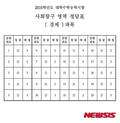 【서울=뉴시스】임종명 기자 = 2016학년도 대학수학능력시험 사회탐구영역 경제 답안. (답안 = 한국교육과정평가원 제공) 2015.11.12.