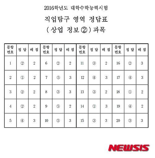 【서울=뉴시스】임종명 기자 = 2016학년도 대학수학능력시험 직업탐구영역 상업정보② 답안. (답안 = 한국교육과정평가원 제공) 2015.11.12.