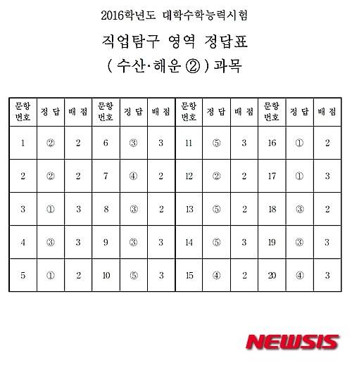 【서울=뉴시스】임종명 기자 = 2016학년도 대학수학능력시험 직업탐구영역 수산해운② 답안. (답안 = 한국교육과정평가원 제공) 2015.11.12.