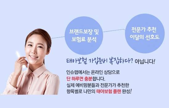 태아 보험 비교사이트 인슈랩(http://news.insulab.co.kr/?a=122) 에서는 손해 보험vs생명 보험 비교와 함께 30세vs100세 만기, 보험 가격, 보장, 순위 등 비교견적을 통해 필요한 보장내용만을 선택하여 적절한 보험료로 가입할 수 있도록 전문 상담을 통해 도와주고 있다. 그리고 다태아(쌍둥이)는 물론 인공수정, 시험관 임신의 태아 보험 정보까지 갖추고 있어 고객들에게 좋은 반응을 얻고 있다.