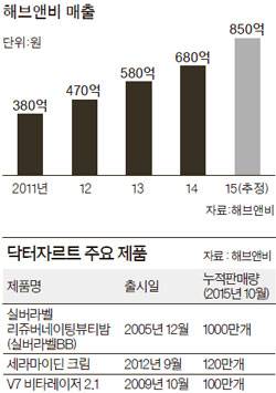에스티로더는 에스티로더·바비브라운·크리니크·맥·오리진스·아베다 등의 브랜드를 거느린 세계적인 화장품 기업이다. ‘K-뷰티’의 높아진 위상을 보여줬다는 평가가 나왔다. 투자를 받은 주인공은 중소 화장품 업체인 해브앤비(HAVE&BE)다. 이 회사 브랜드인 닥터자르트 ‘실버 BB크림’은 2005년 출시 이후 국내에서만 1000만개 판매를 돌파했다. 매출도 2011년 380억원에서 올해는 850억원을 바라보고 있다.