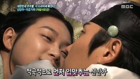 당시 방송에서 은오 역의 이준기와 아랑 역의 신민아는 키스신 촬영에 한창이었다. 두 사람은 나란히 누워 닿을 듯 말 듯 애틋하게 키스를 나눴다.