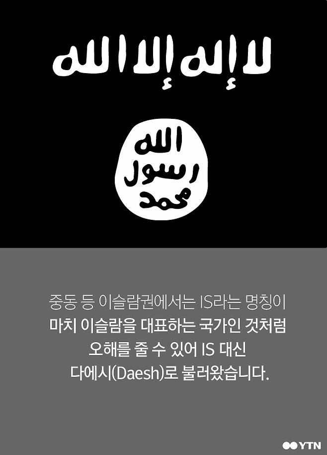 중동 등 이슬람권에서는 IS라는 명칭이 마치 이슬람을 대표하는 국가인 것처럼 오해를 줄 수 있어 IS 대신 다에시(Daesh)로 불러왔습니다.