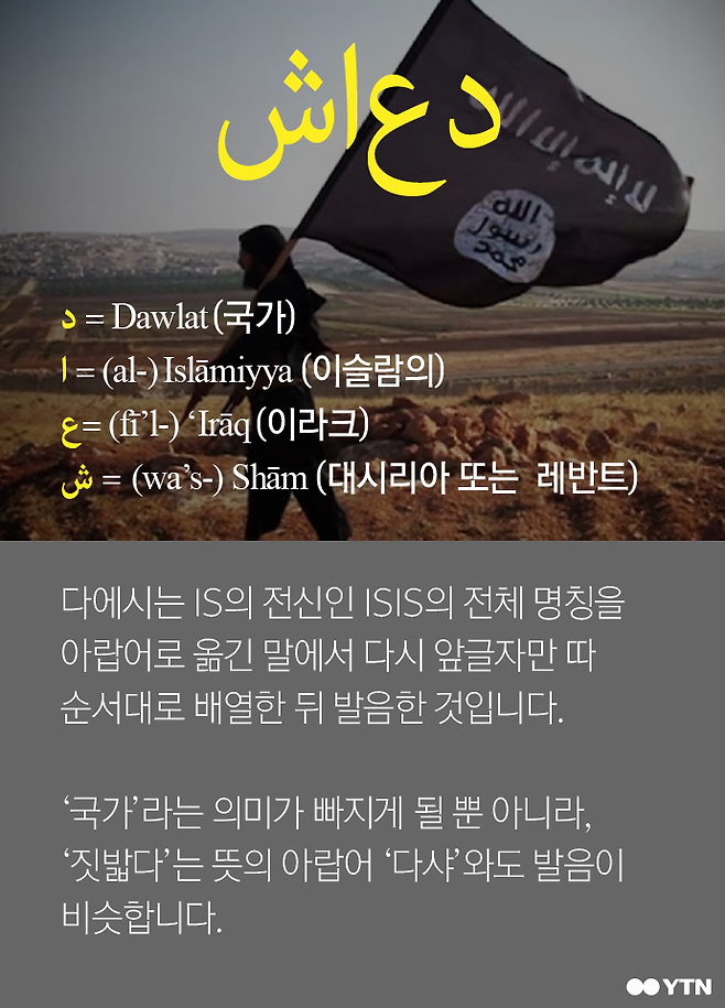 다에시는 IS의 전신인 ISIS의 전체 명칭을 아랍어로 옮긴 말에서 다시 앞글자만 따