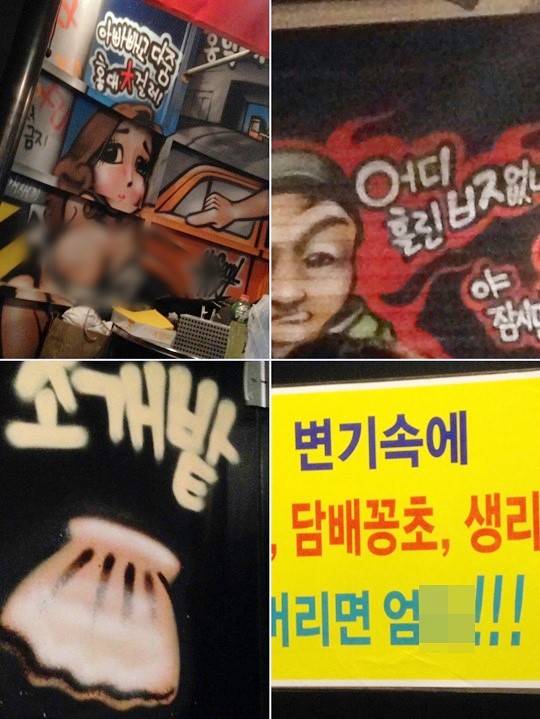 서울 대학가의 한 술집이 여성을 성적으로 비하하는 그라피티(거리 낙서 형태의 그림)를 그려놓고 버젓이 영업한다는 고발이 올라와 네티즌이 공분했다.