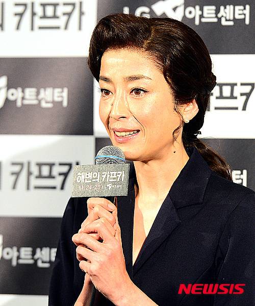 【서울=뉴시스】박영태 기자 = 24일 오후 서울 강남구 역삼동 LG아트센터에서 열린 연극 '해변의 카프카' 프레스콜이 끝난 후 가진 기자회견에서 배우 미야자와 리에가 취재진의 질문에 대답하고 있다.