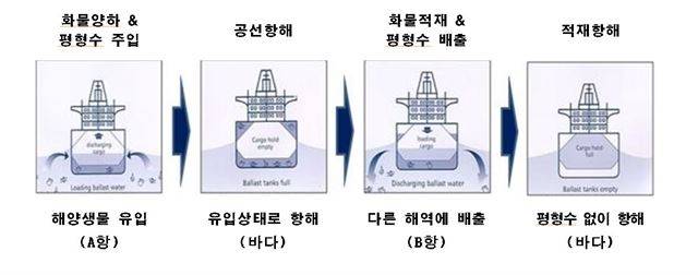 선박 평형수는 선박이 화물을 내린 뒤 부력 때문에 무게중심이 높아지는 것을 막기 위해 배 아래에 채우는 바닷물이다. 문제는 선박에 화물을 싣기 전 전체 배의 무게를 조절하기 위해 평형수를 빼내야 한다는 점이다. 예를 들어 미국에서 화물을 싣고 한국을 오가는 선박은 한국에서 바닷물을 넣었다가 미국에서 빼는 것을 반복한다. 그 과정에서 한국에 서식하는 유해성 플랑크톤이나 박테리아, 해양 생물 등이 평형수에 실려 미국 바다로 이동을 한다.