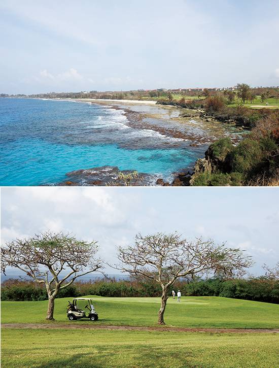 필리핀해를 끼고 라운드를 할 수 있는 골프 코스다. 웅장한 자연에 단정한 정원, 그리고 역시 일본군이 남긴 자연 동굴과 벙커 등이 볼거리와 함께 골퍼를 긴장시키기도 한다. PGA스타 래리 낼슨이 설계한 18홀 코스인데 역시 바닷가답게 호쾌하고 아찔한 홀에 도전하는 즐거움이 있다. 파3, 112야드의 7번 홀과 133야드의 14번 홀은 바다를 낀 계곡을 사이에 두고 샷을 하게 되는데, 첫 타에 온그린시키지 못하면 거의 회복 불가능해서 짜릿한 맛이 있다. 풍광이 가장 아름다운 곳은 14번 홀. 깎아질 듯한 절벽 아래로 에메랄드빛 바다가 보이고 바닷바람도 센 편이라 싱글 골퍼들도 쫄지 않을 수 없는 코스다. 코럴 오션 포인트 리조트는 숙박시설도 갖추고 있다. 호텔급 시설과 분위기로 테라스에서 바라보는 그린과 필리핀해의 모습, 낙조 풍경이 일품이다. 골프 라운딩은 여행사를 통하거나 직접 예약할 수 있다.