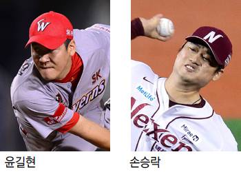 정우람은 올 시즌 이닝 중간에 마운드에 올랐을 때 첫 타자를 타율 0.179, OPS(출루율+장타력) 0.487로 막아냈습니다. 삼진으로 돌려세운 건 전체의 32.6%인 14번. 반면 같은 상황에서 윤길현을 상대한 타자들 기록은 타율 0.333, OPS 1.167이었습니다. 넥센 박병호(29)의 올 시즌 OPS가 1.150이니 윤길현은 위기에서 상대 타자를 박병호 이상 가는 특급 선수로 만들었던 셈입니다. 시즌 전체로 보면 피안타율이 0.244밖에 되지 않는 윤길현이지만 위기에서는 약했던 겁니다.