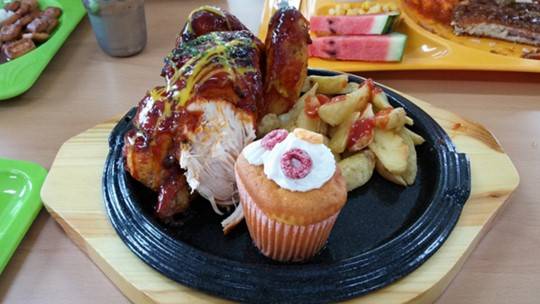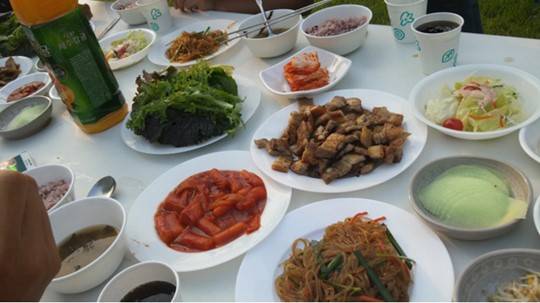 “일년에 두 번, 야외에서 한다”며 삼겹살 급식 사진도 공개했다.