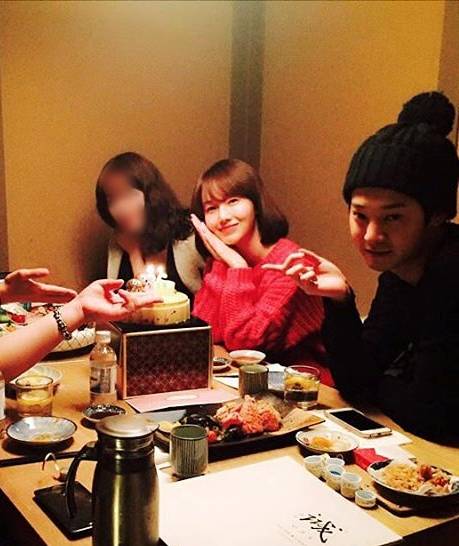 공개된 사진 속 이정현은 정준영 및 지인들과 함께 식당에서 다정하게 사진을 찍고 있다. 이정현의 귀여운 외모가 시선을 사로잡는다.