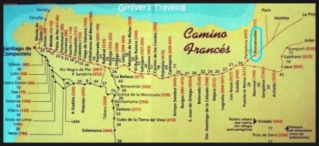 프랑스길(Camino Frances)은 프랑스의 생장에서 출발해서 피레네 산맥을 넘어 론세스바예스(Roncesvalles)라는 스페인 북동쪽 마을을 거쳐 서쪽의 산티아고 대성당까지 가는 대장정의 길이다. 여기가 마드리드니까 프랑스 생장(St.jean pied de port)까지 갔다가 피레네 산맥을 넘어 론세스바예스로 가고 싶지만 오늘은 복병이 있다. 요즘 피레네 산맥에 눈이 너무 많이 내리는 것이다. 산을 넘는 것은 쌓인 눈 때문에 무리라는 결론이 내려져서 생장으로 가지 않고 다음 마을인 론세스바예스로 간다. 그곳에서 첫 걸음을 시작하게 될 것이다.