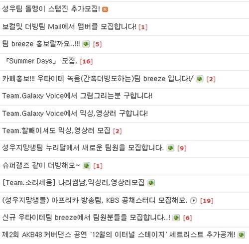 개인이 아닌 팀을 이뤄 활동하기도 한다. ‘사운드 팝’(Sound Pop) ‘겔럭시 보이스’(Galaxy Voice) ‘돌멩이’ ‘아메리카노 엑소더스’ ‘마이온’ 등 언더 성우들 사이에는 다양한 팀이 있다. 주로 성우들이 모이는 카페에서 모집하며 각자 더빙을 한 녹음 본을 보내고 통과되면 팀 안에 들어갈 수 있다. 그들은 서로의 목소리 연기에 피드백을 해주고 성우를 원하는 기업과 접촉, 개인 언더성우보다는 조금 더 안정적인 활동을 할 수 있도록 해주는 역할을 한다.