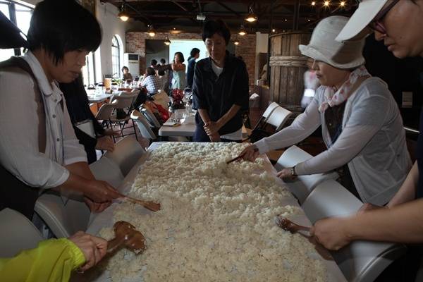 | ▲ 양조장을 찾아서 술빚기 체험을 하고 있다. |