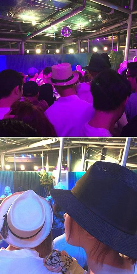 또 다른 사진에는 주지훈이 가인을 번쩍 안아 올리고 나란히 공연을 관람하는 모습이 담겨 관심을 모았다. 글쓴이는 "가인이 키가 작아서 공연이 안 보이니까 주지훈이 들어서 보고 있는 거라고 한다"며 설명을 덧붙였다.