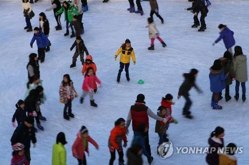 (서울=연합뉴스) 13일 서울 용산 아이파크몰 아이스링크에서 시민들이 스케이트를 즐기고 있다.