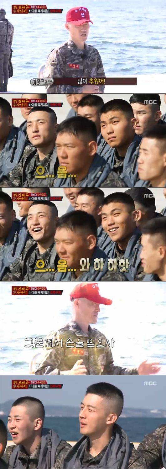 20일 방송된 MBC 예능프로그램 ‘일밤-진짜사나이’는 교관이 좋은 분위기를 위해 농담을 하는 모습이 공개됐다. 멤버들을 비롯한 훈련병들은 웃음을 터뜨렸다. 웃기지 않았지만 억지로 웃었다.