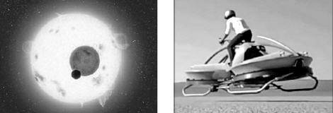 주인공과 제국군 병사가 타고 추격전을 벌이는 하늘을 나는 운송 수단인 스피더 개발은 눈앞에 다가왔다. 미국 캘리포니아 벤처기업인 에어로펙스사는 모터사이클처럼 생긴 하늘을 나는 호버크래프트인 ‘에어로 엑스’(오른쪽 사진)를 개발했다. 이 개인용 호버크래프트는 3m 높이에서 시속 72㎞를 낸다.