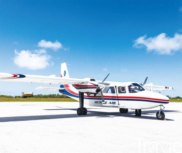 경비행기는 사이판에서 티니안이나 로타로 이동하려면 반드시 이용해야 하는 교통수단이다. 국제공항 옆에 위치한 국내선 터미널에서 아틱 서클 에어코ARCTIC CIRCLE AIRCO(로타)와 스타 마리아나스 에어STAR MARIANAS AIR(로타, 티니안) 항공편을 이용할 수 있다. 4인승에서 10인승까지 다양한 크기의 경비행기가 운행되는데, 로타로 가는 경비행기는 하루에 한 번 11시에 출발한다. 예약은 전화나 이메일로 가능하며 3주 전에 예약을 마치는 편이 안전하다.
