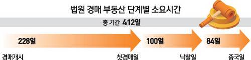 개시결정부터 종국일까지 법원경매 평균 412일 걸려