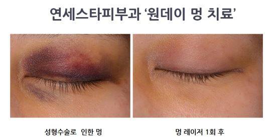 연세스타피부과‘원데이 멍 치료’는 적혈구에 작용하는 멍 레이저와 세포 활성을 돕는 젠틀웨이브 레이저, 약물치료를 병용해 멍 회복 기간을 단축했다.