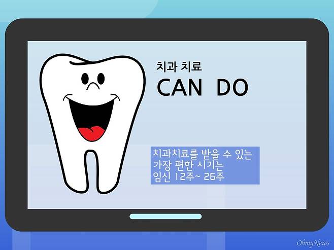 보건복지부는 "임신 중 치과치료는 유산이나 조산, 저체중아 출산과 관계없고 치료에 따른 마취, 방사선 촬영 등도 태아에게 미치는 영향이 거의 없다"라고 밝혔습니다. 다만, "임신시기 동안 치료받는 도중의 약물의 섭취나 방사선 사진을 찍는 것은 태반이나 다른 경로를 통해 태아에 중대한 영향을 미칠 수 있으므로 관련 의사와의 상담이 꼭 요구된다"(세브란스병원 건강칼럼)고 합니다.
