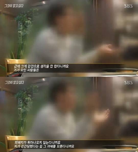 이른바 ‘초대남'으로 불리는 여성 강간에 대해서는 “강간이지만 거기 모인 사람들은 강간으로 생각을 안 한다”며 “피해자가 (본인이) 강간당한 지도 모르기 때문”이라고 언급했다.