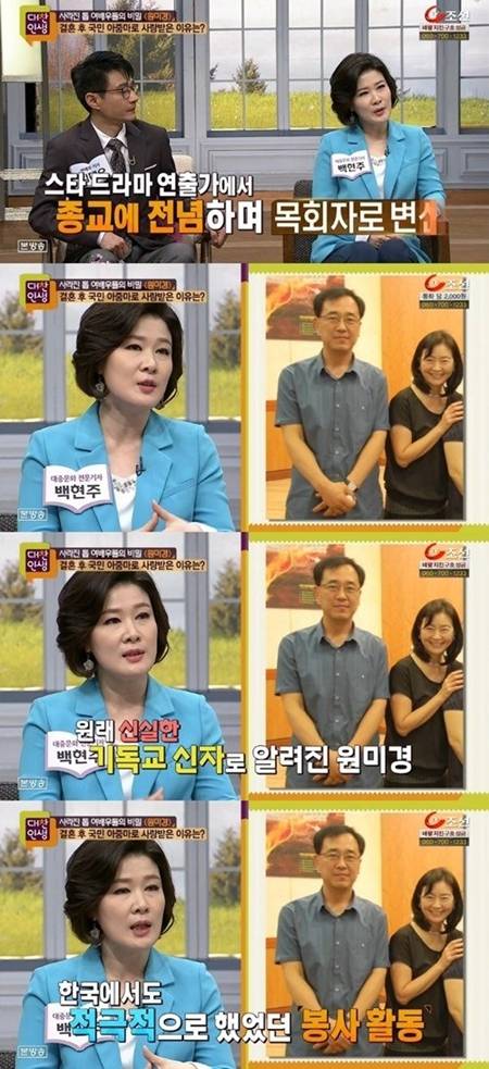 특히 이창순PD 목회자로 변신한 소식이 전해져 눈길을 끌었다. 대중문화전문가 백현주는 "부부의 삶을 보면 이해가 간다. 원미경은 평소 독실한 신자로, 봉사활동을 열심히 했었다"고 밝혔다.