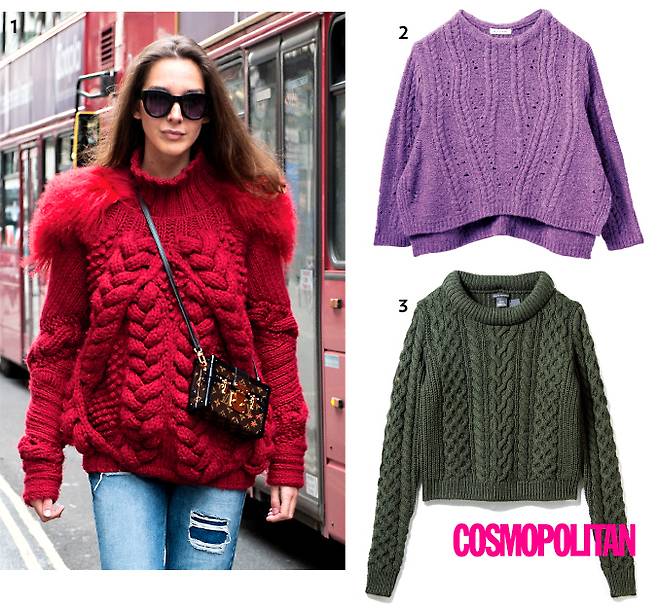 1.독특한 디자인의 핑 허 케이블 니트 스웨터를 캐주얼한 데님 팬츠와 매치했다. 2.49만9천원 미샤 3.25만8천원 클럽 모나코