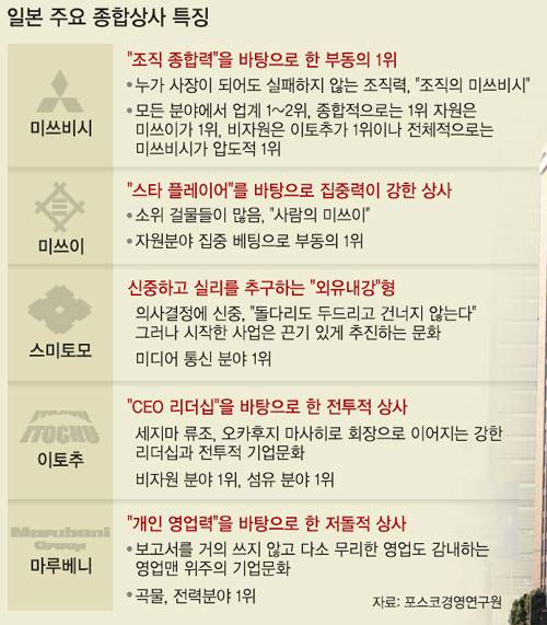 우리나라 종합상사는 대체로 일본 종합상사의 발전 과정을 그대로 답습했다. 애초 1975년 정부 관련법 제정으로 삼성물산이 국내 1호 종합상사로 지정되는 막후에도 이토추 상사 세지마 류조 전 회장의 ‘세지마 보고서’가 결정적 역할을 했다는 게 정설이다.