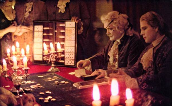 | 영화 <배리 린든>에서 룰렛 테이블에 앉아 있는 주인공 배리 린든(라이언 오닐·오른쪽)과 발리발리 기사(제임스 마지스 역·린든 왼쪽)의 모습.(1973~1975, 영국/미국 제작) ⓒWarner Bros. Entertainment Inc. | 서울시립미술관 제공 |